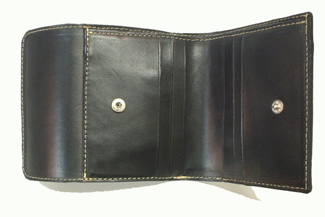 開いたところです。カード入れが3枚づつついていて、ホック止めになっています。ホックは消耗品です。効きが悪くなったら早めにご連絡ください。