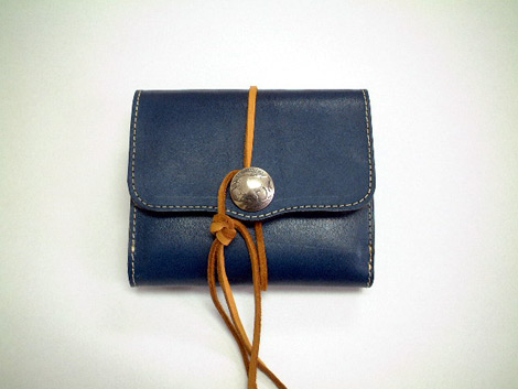 小銭いれ部分にシルバー製のコンチョをつけて、鹿の皮ひもをつけました。女性向けです。